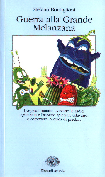 Siccome non c'è modo di avvicinarsi di più alla caverna senza scontrarsi coi peperoni, Rossi l'eroe ed il suo attendente melissiano decidono di attendere pazientemente che la melanzana esca all'aperto. È un'attesa lunga e snervante che dura tutta la giornata arancione ma finalmente la Grande Melanzana esce: è enorme, misura più di tre metri d'altezza e sicuramente pesa qualche quintale; ha gambe, braccia ed occhi. E che occhi !!! Ha lo sguardo intelligente, ma così freddo che mette i brividi. La precedono servili e solerti cespi d'insalata che spazzano il terreno davanti a lei. I peperoni si inchinano al suo passaggio. La Grande Melanzana sente il grido e si volta: un'espressione di terrore si dipinge sul suo volto scuro di vegetale e cerca di rifugiarsi nella caverna. Ma Rossi l'eroe è più svelto di lei: spara a ripetizione sbriciolando rocce, peperoni e altre piante tutt'intorno. Un attimo prima che raggiunga la sua caverna, la Grande Melanzana è colpita e scompare in un lampo di luce bianca con un grido tremendo. La guerra è vinta. La Grande Melanzana non esiste più: i Melissiani sono salvi. |
